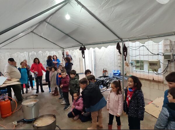 Durante la jornada, el alumnado pudo conocer de cerca esta costumbre popular tan vinculada a nuestra cultura y a la vida rural. Además, todos disfrutamos de uno de los platos más representativos de esta celebración: las tradicionales migas, que hicieron las delicias de pequeños y mayores.